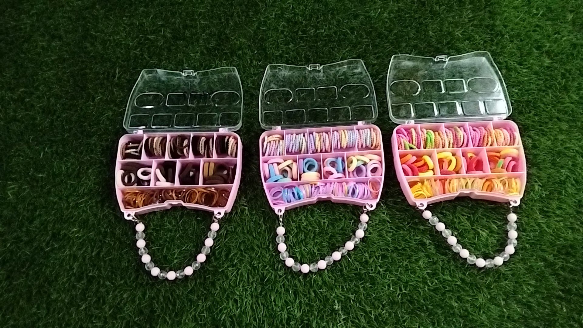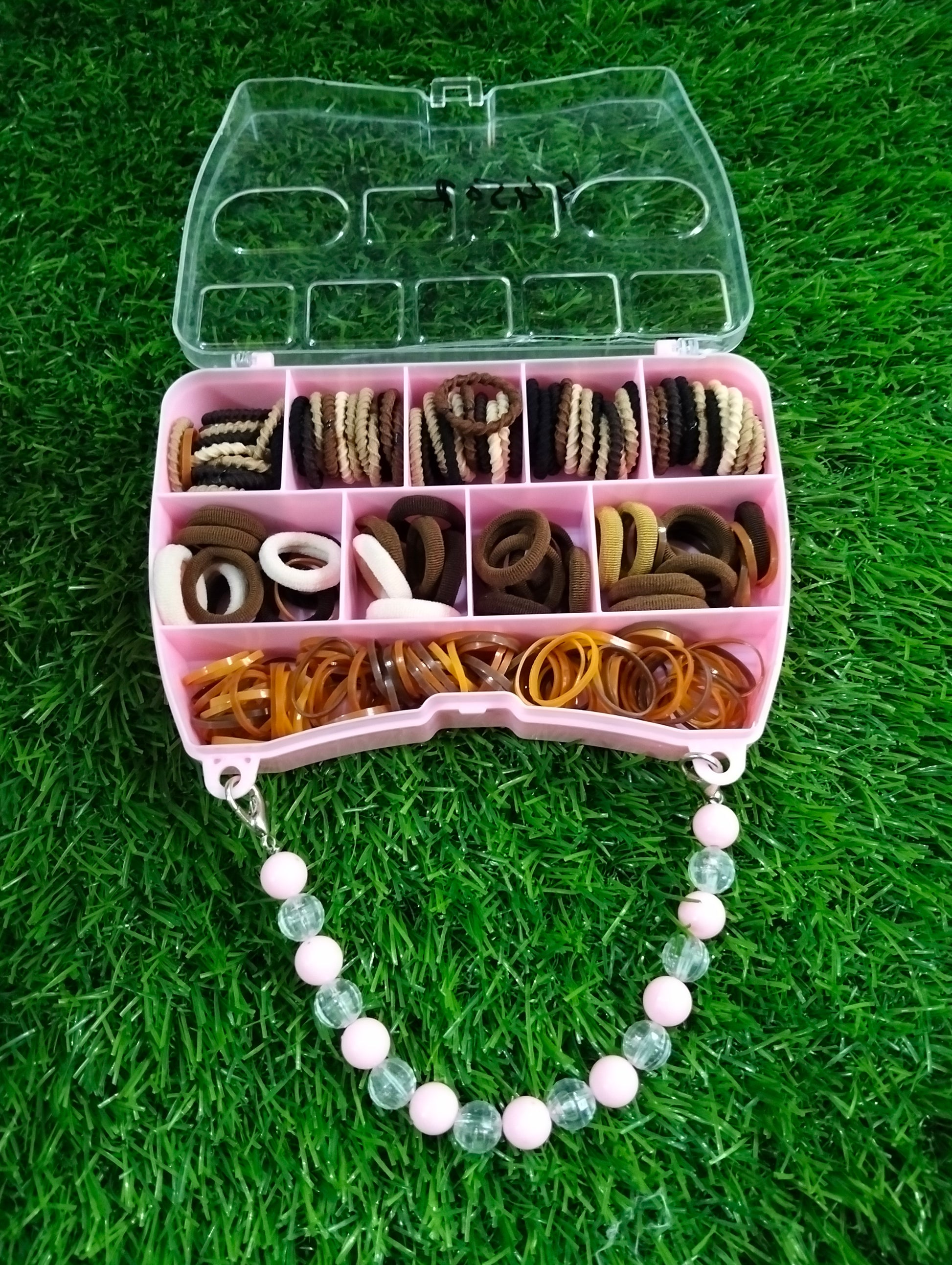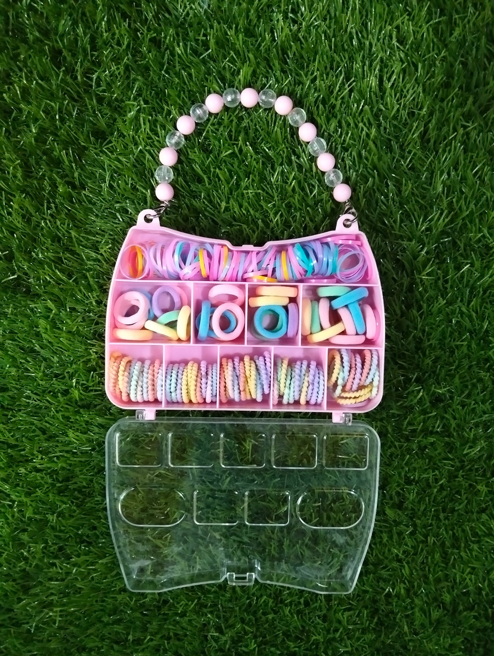 Unbox the joy of styling! This adorable **multi-compartment box** is packed with soft, colorful hair ties, rubber bands, and spiral ponies — perfect for every hair type. Comes with a cute beaded handle for easy carry. A must-have for little fashionistas and trendy girls!